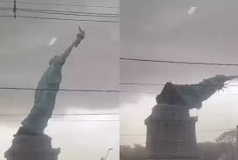 Una réplica de la Estatua de la Libertad se desplomó este lunes 15 de diciembre en la ciudad de Guaíba, en el estado brasileño de Río Grande do Sul, tras ser impactada por un violento fenómeno meteorológico. La estructura, instalada frente a una megatienda de la cadena Havan, perdió su parte superior durante el pico de la tormenta, mientras que el pedestal permaneció en pie.