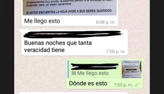 Dicho mensaje está publicado a su vez en diversos medios informativos en Colombia desde 2016, donde se menciona que el panfleto enviado por mensajería instantánea es falso, aunado a ello fue distribuido en México también pero con origen en Medellín.