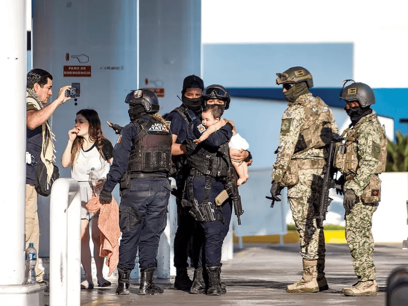 Algunos pistoleros lograron escapar corriendo a través de una plaza comercial cercana, donde fueron perseguidos por los militares, son ser detenidos.