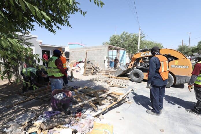 “Estamos trabajando en la calle Paseo del Amanecer, en una vivienda que ya había sido señalada por los vecinos debido a que personas ajenas al propietario ingresaron y comenzaron a acumular basura y objetos en condiciones insalubres. Esta acción es parte del programa de Reordenamiento Urbano, y en esta ocasión nos encontramos personal de Desarrollo Urbano, Ecología, Protección Civil, Seguridad Pública, Seguridad Vial y Limpia”, señaló.