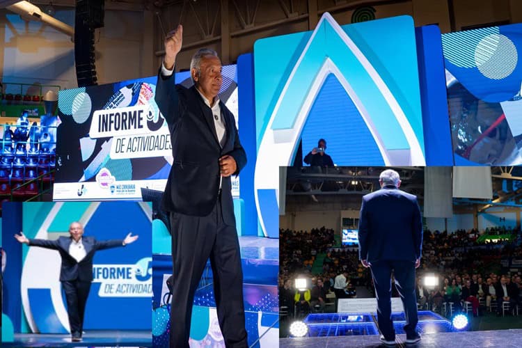 El director ejecutivo de la JMAS realizó su informe de trabajo en el gimnasio del Cobach, donde quiso dejar de manifiesto que es capaz de movilizar gente y que le sabe a la cosa de hablar ante públicos amplios.