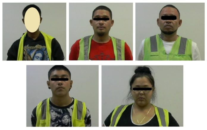 Cd. Juárez. – El agente del Ministerio Público de la Unidad Especializada en Investigación con Detenido, arrestó a Gabriel Alejandro S. V., de 19 años, Carla Iveth M., de 31 años, José David L. E., de 24 años, Jesús Manuel L. E., de 30 años y un menor de 17 años, a bordo de un vehículo por el delito de desobediencia y resistencia por particulares.