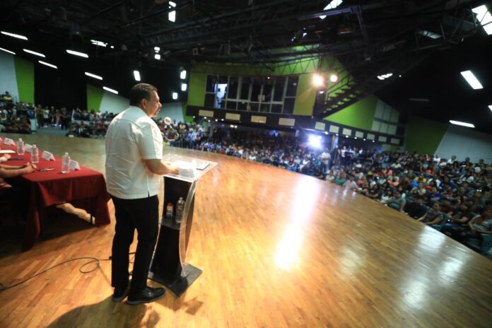 El Presidente Municipal, Cruz Pérez Cuéllar, presidió el evento de entrega de las becas universitarias, las cuales, dijo es un programa del que nos sentimos orgullosos, porque surgió del Instituto Municipal de la Juventud.