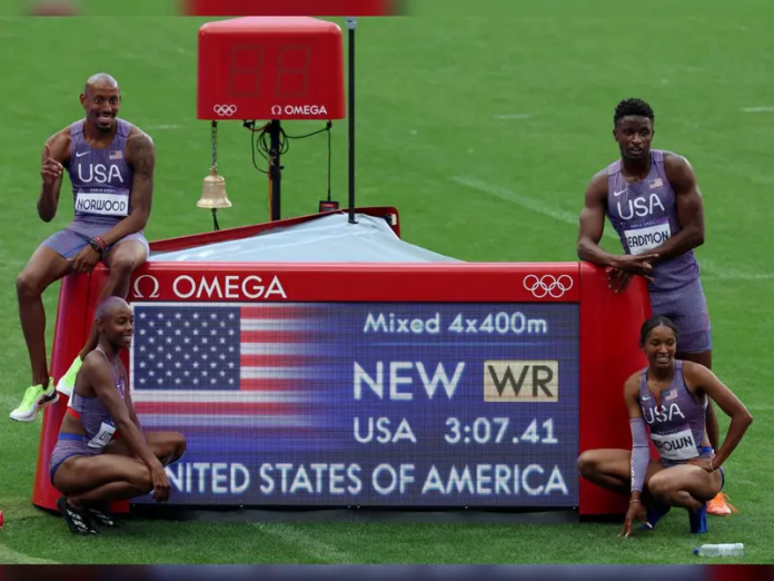 París.- Estados Unidos batió el récord del mundo del relevo 4×400 metros mixto de atletismo en las series de acceso a la final, en los Juegos de París, con un crono de 3 minutos 7 segundos 41 centésimas.
