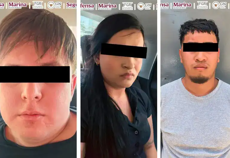 Por lo anterior, la mujer de nacionalidad estadounidense y los dos hombres, uno de ellos con doble nacionalidad, fueron detenidos, informados de sus derechos de ley y junto con lo asegurado fueron puestos a disposición del agente del Ministerio Público correspondiente, quien determinará su situación legal.