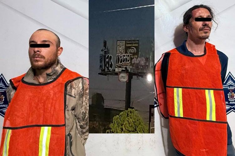 Ciudad Juárez, Chih.- Elementos de la Secretaría de Seguridad Pública Municipal, realizaron la detención de César Alfonso F. F. y Josué Armando R. L., por su presunta responsabilidad en la comisión de delitos contra la salud, daños a propiedad privada y desobediencia y resistencia de particulares.