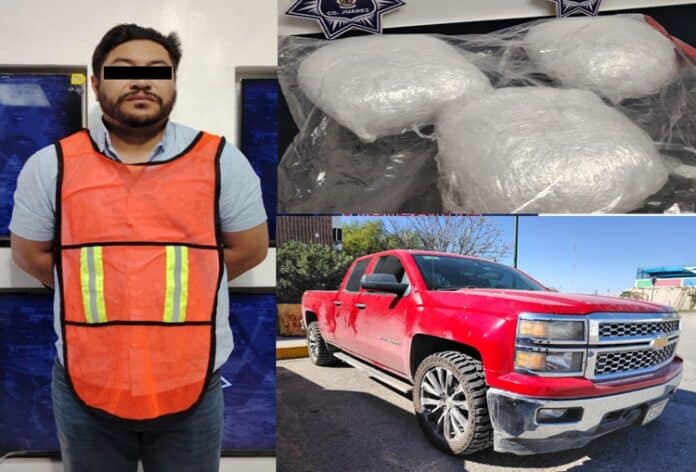 El aseguramiento se dio cuando policías municipales que realizaban labores de prevención y vigilancia en el cruce del bulevar Teófilo Borunda y Pedro Meneses Hoyos, se percataron de una camioneta Chevrolet silverado, color rojo, modelo 2014, que circulaba a exceso de velocidad.