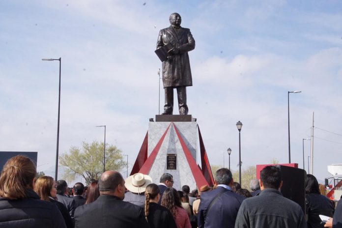 Lo anterior al encabezar la develación del Monumento al licenciado Benito Pablo Juárez García, en conmemoración al 213 Aniversario de su natalicio.