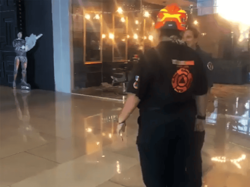 Lluvias colapsan techo de cristal en plaza comercial Áurica, en sector Real San Agustín, San Pedro, Nuevo León.