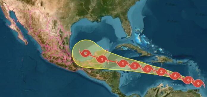 El huracán Beryl ingresará a territorio mexicano a través de las costas de Quintana Roo durante la noche del jueves 4 de julio o madrugada del viernes 5 de julio al tocar tierra entre Felipe Carrillo Puerto y Othón P. Blanco, de acuerdo con los primeros pronósticos de su trayectoria, con vientos mayores a los 120 kilómetros por hora.