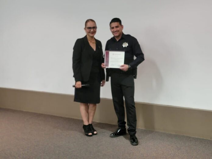 Ciudad Juarez Chih.- Como parte de las estrategias encaminadas a la profesionalización de los cuerpos de seguridad, el Oficial Alfredo Velazco, encargado del Área de Investigación de la Secretaría de Seguridad Pública Municipal, impartió una conferencia dirigida a estudiantes de criminología de la Universidad Vizcaya Ciudad Juárez.