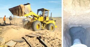 Junto al sitio, los oficiales encontraron diversas herramientas que se utilizan para la excavación, entre éstas, palas, barras, cubetas, marro, las cuales se encontraban cubiertas con hojas de madera y maleza, por lo que resguardaron el lugar y los agentes procedieron a inhabilitar la excavación, cubriéndola con tierra utilizando una retroexcavadora.