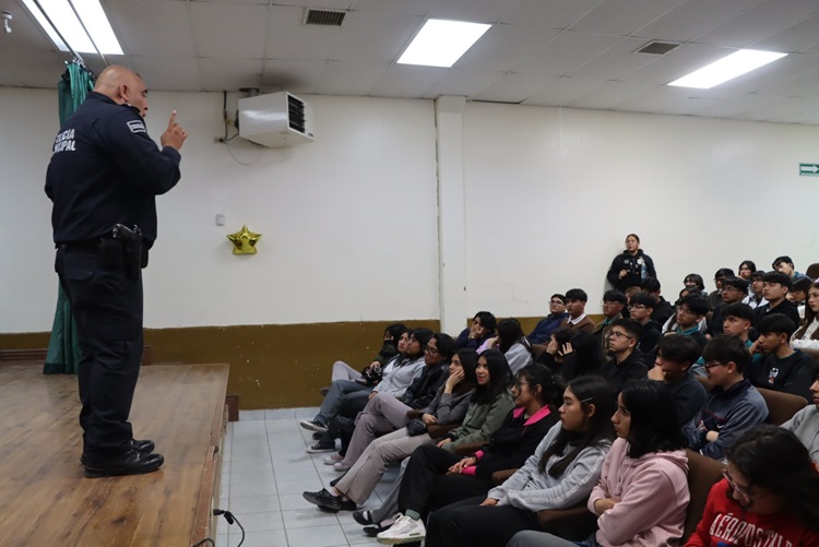 Con el objetivo de informar a los jóvenes sobre los distintos tipos de droga que existen y brindarles las herramientas necesarias para evitar el consumo de estas, agentes municipales se trasladaron hasta el plantel ubicado en la avenida Universidad Tecnológica, del fraccionamiento Hacienda de Las Torres, a impartir pláticas preventivas.