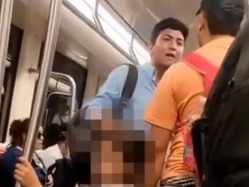En el video podemos ver al hombre de camisa azul encarando al sujeto que pedía dinero en el vagón junto a la niña.
