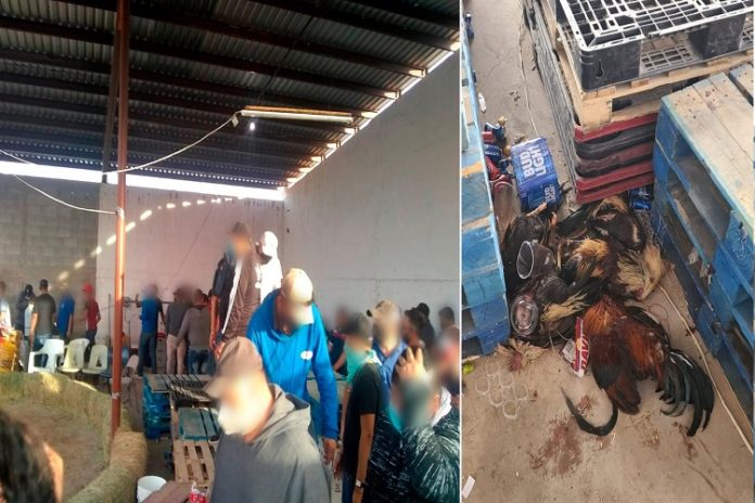 Agentes de la Secretaría de Seguridad Pública Municipal realizaron la clausura de un negocio de producción y venta de tarimas de madera, el cual fue habilitado de manera clandestina como “palenque clandestino”, al sorprender a 248 personas entre adultos y menores de edad aglomeradas observando las peleas de gallos pese a las medidas de emergencia sanitaria emitidas por el Gobierno Estatal.