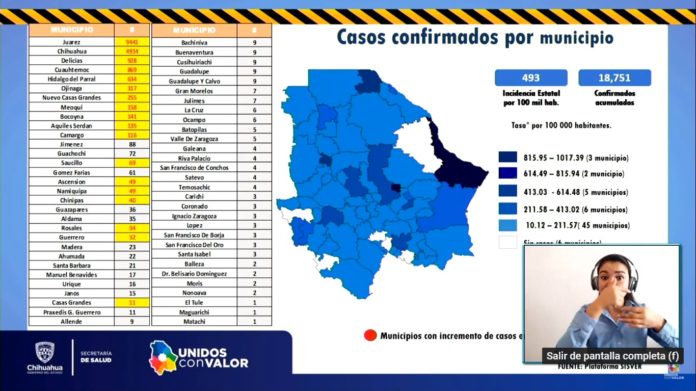 Ciudad Juárez, Chih. – La Dra. Wendy Ávila informó que actualmente hay en todo el estado de Chihuahua 18 mil 751 casos de covid 19 y mil 569 muertes por el virus.