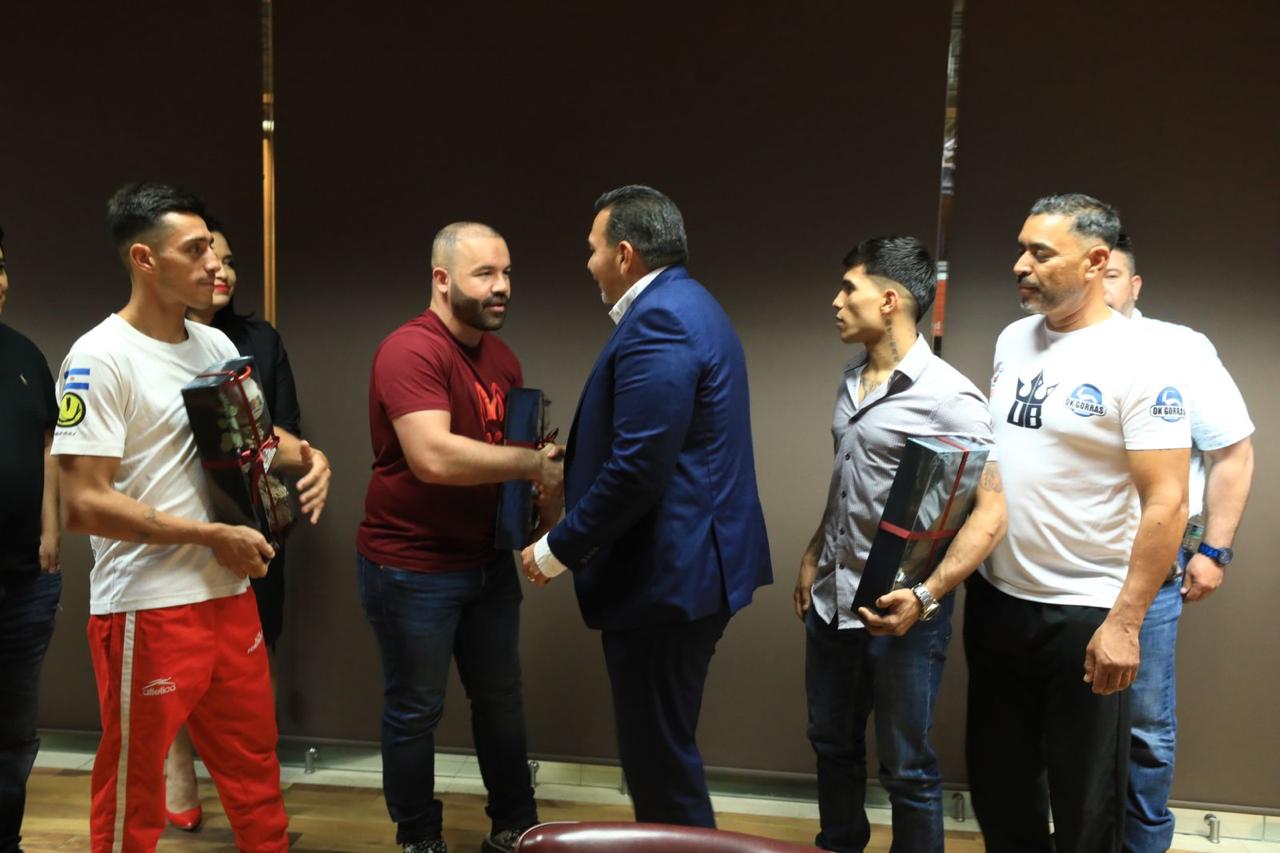 El alcalde expresó su agradecimiento a los boxeadores por la visita y les destacó que siempre va a apoyar al talento juarense.