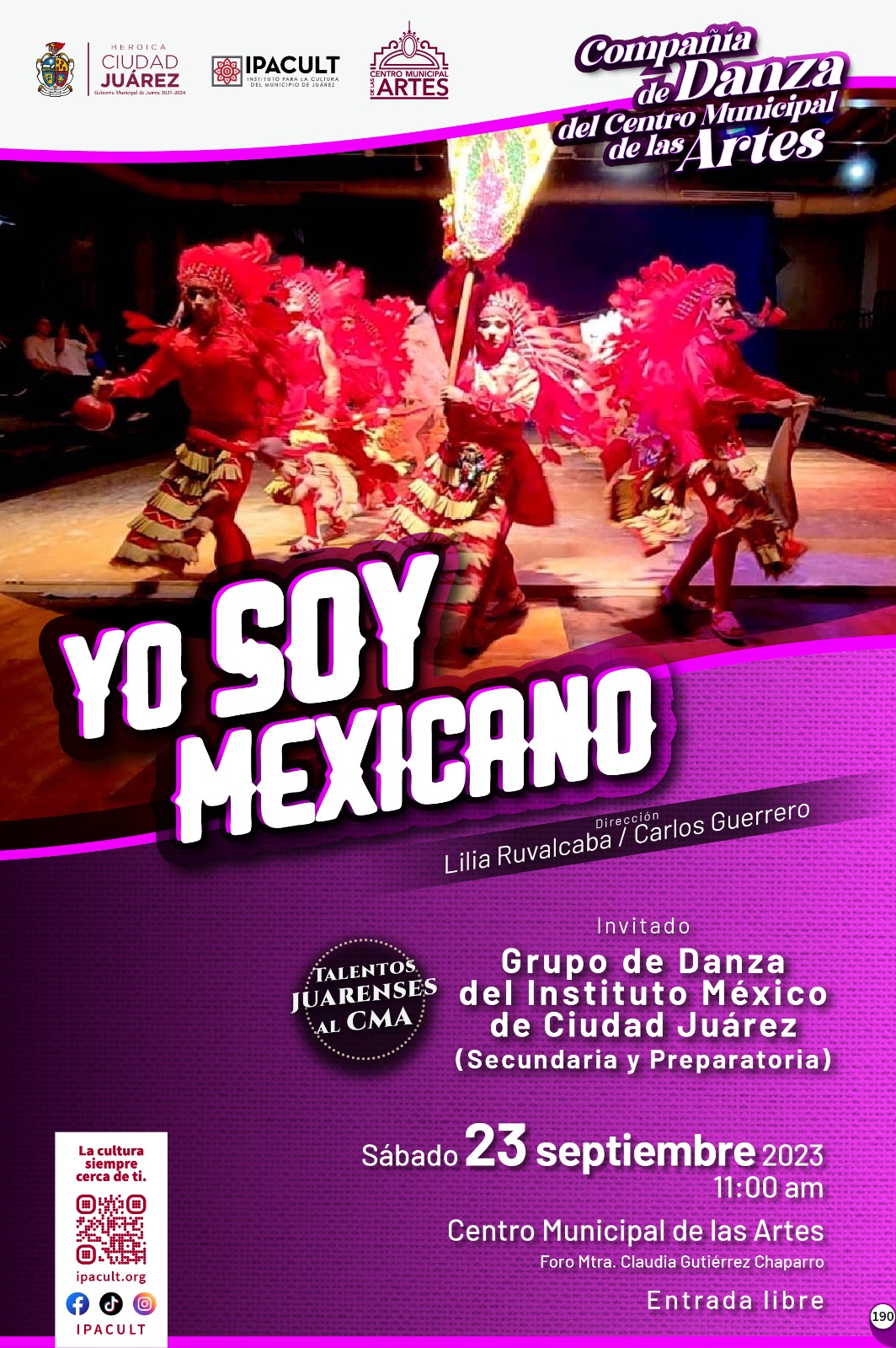 Para esta ocasión, se contará con la actuación especial del grupo de danza del Instituto México de Ciudad Juárez (secundaria y preparatoria).