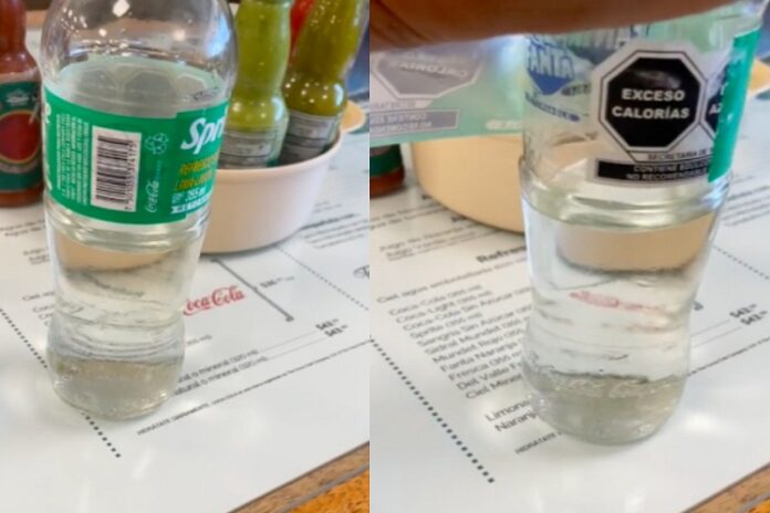 En el video que compartió se ve que pidió un Sprite y se lo llevaron en envase de vidrio. De pronto le quita la etiqueta y abajo viene marcado el nombre de Fanta.