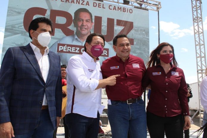 “Va a ser un gran equipo con Juan Carlos Loera como gobernador y con “ya saben quién” y por supuesto con todos ustedes”, dijo Mario Delgado ante el micrófono para darle el espaldarazo a Cruz Pérez Cuéllar.