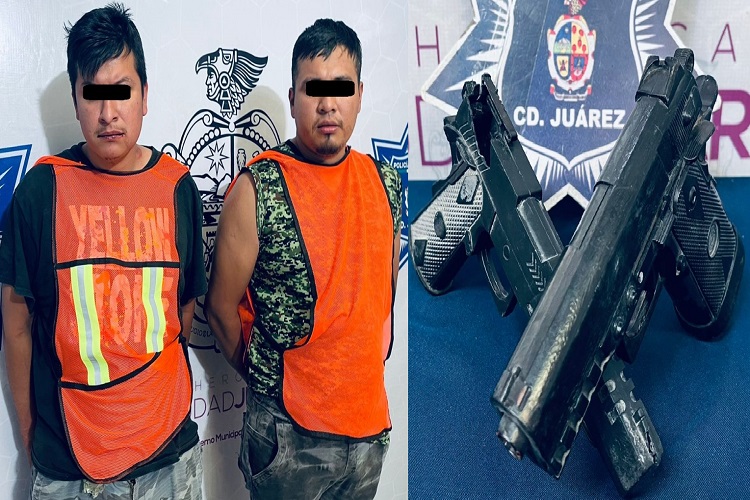 Ciudad Juárez, Chih.- Agentes Municipales detuvieron a dos sujetos que con pistolas de juguete amenazaron de muerte a su vecino.