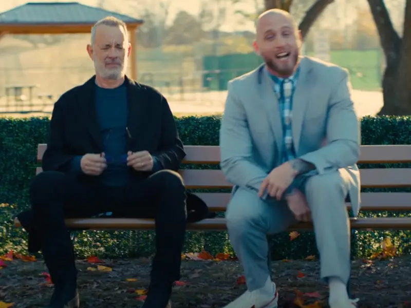 Sin embargo, uno de los momentos más divertidos y sorprendentes del video llega cuando Chet Hanks, sentado en una banca al estilo de Forrest Gump, es acompañado por su padre, Tom Hanks.