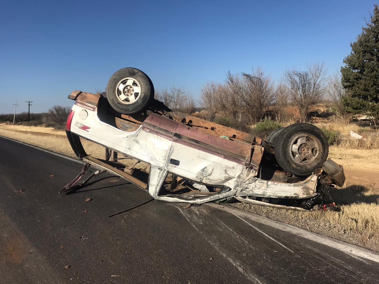 Chihuahua, Chih.- Tres muertos y dos lesionados, fue el saldo de una volcadura ocurrida a las 15:30 horas, en el kilómetro 041+900, de la carretera Chihuahua – Ciudad Juárez, en el tramo Sacramento- El Sueco.