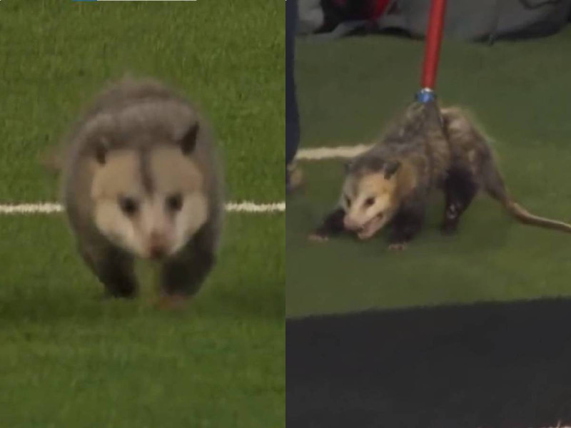 Pese a que la zarigüeya no provocó ningún percance, fue retirada del lugar con una pinza. En los videos se ve como el animal se resiste a salir del campo de juego gruñendo y aferrándose al suelo con sus garras.