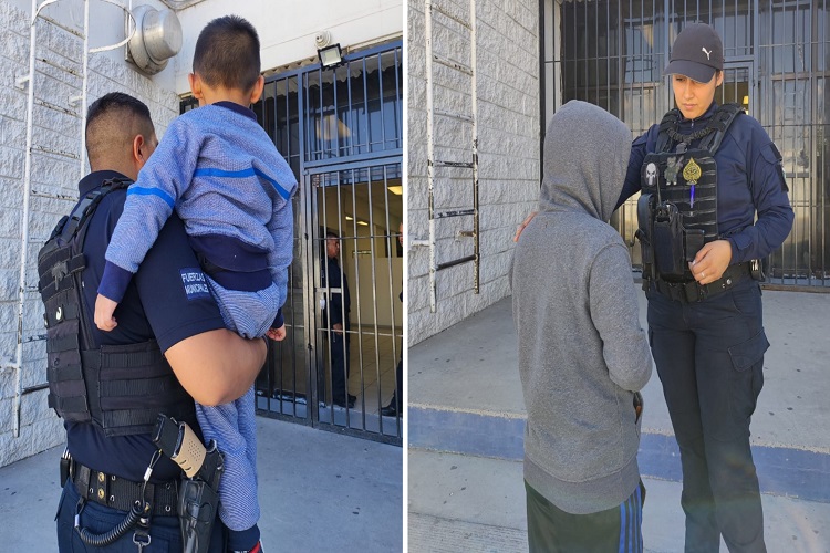 Agentes municipales que realizaban labores de prevención y vigilancia en el cruce de la avenida Heroico Colegio Militar y General Rivas Guillén, en la Zona Centro, se percataron de dos menores caminando hacía el límite fronterizo, los cuales se encontraban sin la supervisión de un adulto.
