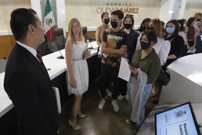 Ciudad Juárez, Chih.- Con la intención de conocer como se da la toma de decisiones en la administración municipal, estudiantes de la Universidad Autónoma de Chihuahua (UACH), de las carreras de Administración Pública y Relaciones Internacionales, acudieron a la reunión previa de la sesión ordinaria de Cabildo.