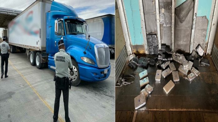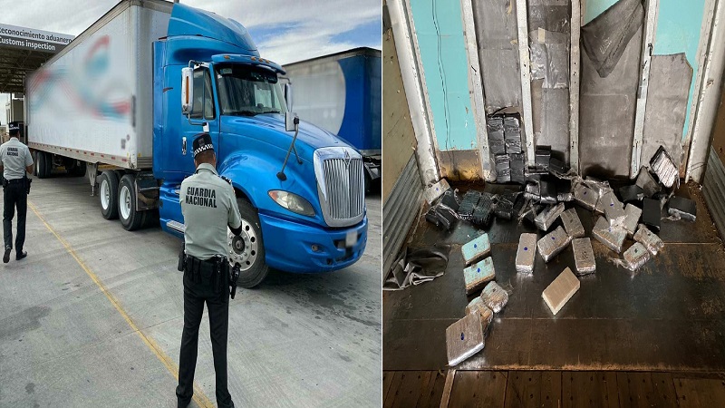 Ciudad Juárez, Chih.- Con el objetivo de inhibir el traslado de productos y sustancias ilícitas en el Puente Internacional Jerónimo-Santa Teresa, estado de Chihuahua, elementos de la Guardia Nacional en coordinación con el Servicio de Administración Tributaria (SAT) interceptaron alrededor de 36 kilos 812 gramos de aparente cocaína y 3 kilos 992 gramos presumiblemente de heroína.