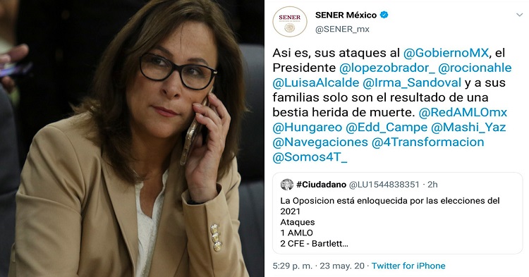 El mensaje, emitido desde la cuenta oficial de la secretaría, dice “Así es, sus ataques al @GobiernoMX, el presidente López Obrador, Rocío Nahle (titular de la dependencia), Luisa Alcalde, Irma Eréndira Sandoval, y a sus familias sólo son el resultado de una bestia herida de muerte”, y arroba, o liga a otras cuentas como @4Transformción y @Somos4T_, que suelen replicar mensaje a favor del gobierno de la llamada Cuarta Transformación.