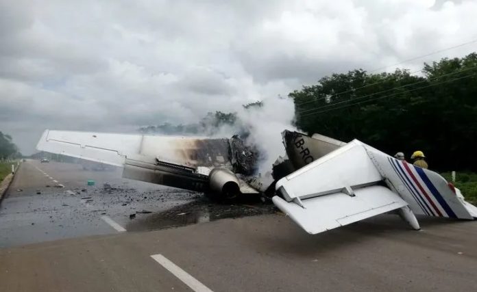 El Secretario de Seguridad Pública estatal, hizo un llamado a evitar la zona, debido a que la aeronave siniestrada se encuentra incendiándose sobre la carretera.