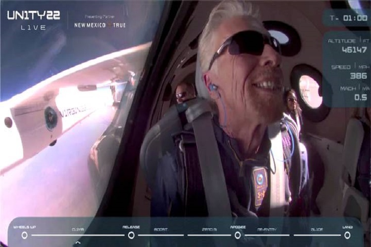 Al llegar a su punto de lanzamiento, el VSS Unity fue liberado de la nave nodriza y cayó cuando la tripulación encendió su cohete, lo envió hacia arriba a una velocidad supersónica a unos 85.9 kilómetros de altura.