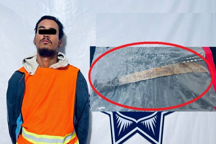 Ciudad Juárez, Chih.- Fue detenido un sujeto que amenazaba de muerte con un machete a los clientes de un centro comercial, a quien acusaron por su presunta responsabilidad en la comisión del delito de amenazas.