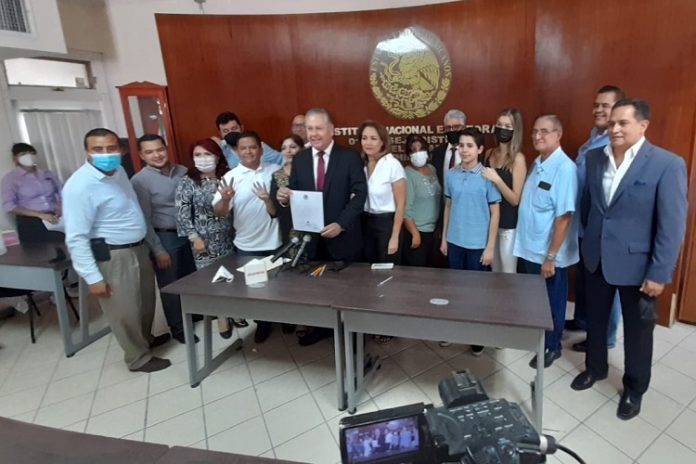 Daniel Murguía recibió el acta que lo acredita como diputado federal, en un acto ante medios de comunicación y autoridades del INE.