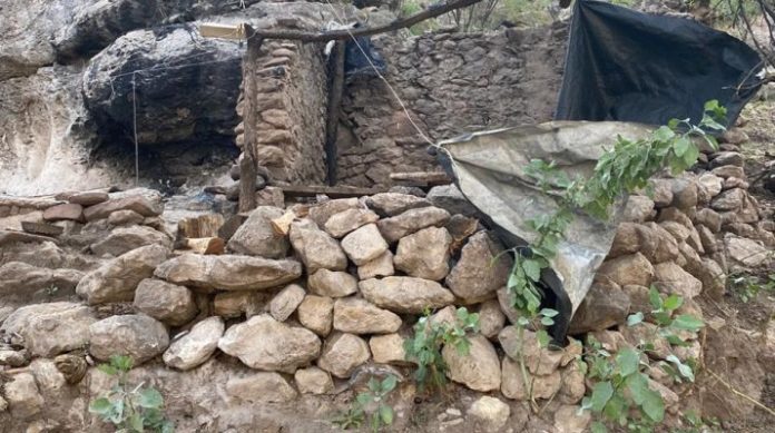 En la inspección realizada en el lugar se localizaron colchonetas, cobijas, mandado y enseres de cocina con señales de actividad reciente.