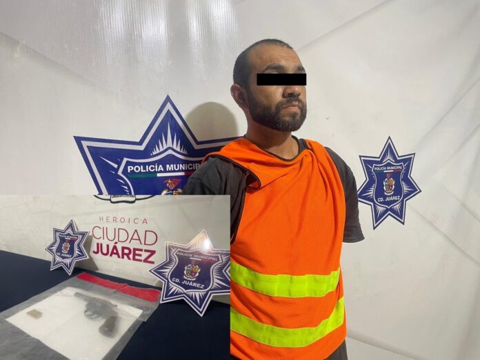 Ciudad Juárez, Chih.- Elementos de la Secretaría de Seguridad Pública Municipal arrestaron a José Noel B. R.,por su presunta responsabilidad en la comisión de delitos contra la ley federal de armas de fuego y explosivos.
