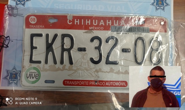 Ciudad Juárez, Chih. – La Coordinación General de Seguridad Vial arrestó al chofer de un camión de transporte público de la línea 1B que llevaba placas sobrepuestas, las cuales pertenecían a un vehículo Chevrolet Corsica.