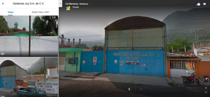 La empresa “Gelatinas Juy SA de CV”, está ubicada en la Avenida Minerva número 701, en la colonia Paseo Nuevo, de Ciudad Mendoza, según Google Maps, y está cerrada permanentemente, o sea que no tiene actividad.