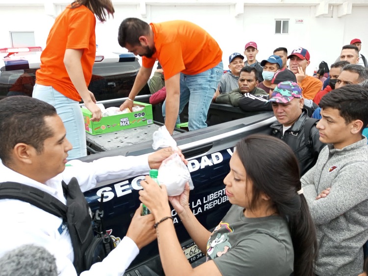 Una vez que se adquirió la comida, los policías viales acudieron a las instalaciones del Consejo Estatal de Población y Atención a Migrantes (Coespo), para apoyar a los migrantes venezolanos que se encuentran refugiados en ese lugar y llevarles estos combos que contaban de hamburguesa, papas y refresco.