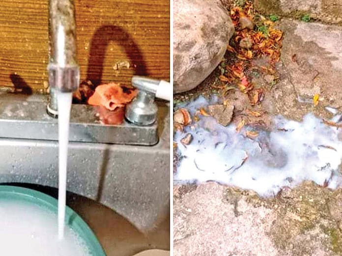 Asimismo, informó que hasta el momento las pruebas que se tienen es que el agua presenta un color blanquecino a lechoso y olor característicos a veneno para garrapatas (garrapaticida).