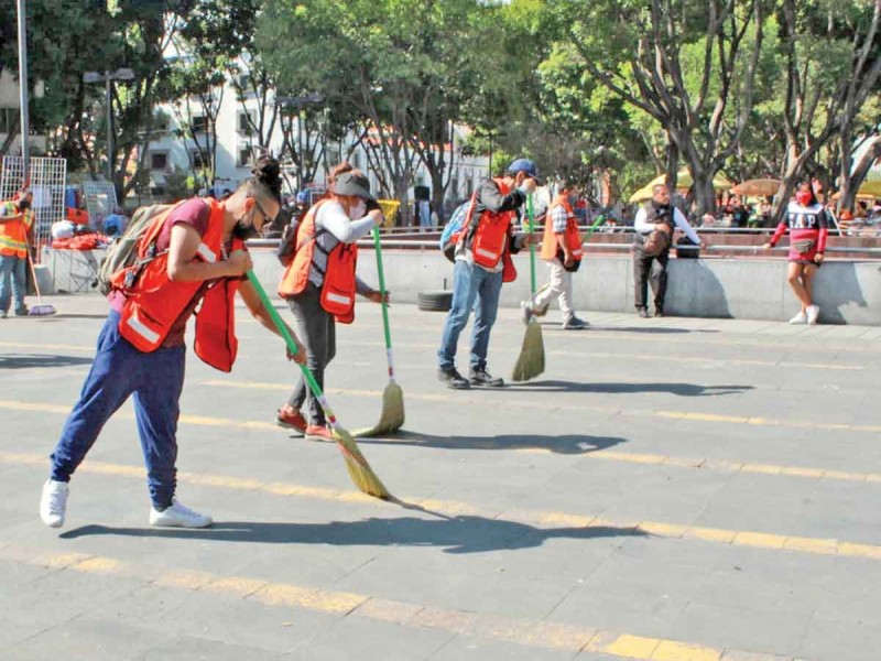 Han limpiado espacios públicos como Plaza Loreto, Plaza Vizcaínas, Plaza Santísima y Plaza de la Conchita. El martes pasado, el trabajo comunitario se realizó en la Plaza Pino Suárez.