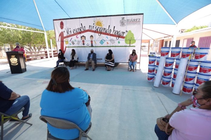 Durante el evento de entrega de los apoyos, la titular de la Dirección de Educación, Nancy Beltrán García, dio a conocer que en este plantel se entregaron siete cubetas de pintura blanca y 15 más en color guinda, así como siete botes de impermeabilizante y dos rollos de malla para realizar impermeabilización y en los próximos días se visitarán otros nueve planteles educativos.