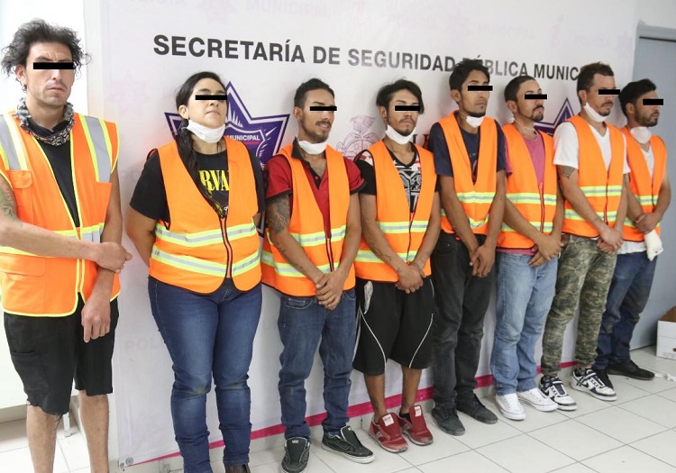 Elementos de la Secretaría de Seguridad Pública Municipal realizaron el arresto de ocho integrantes del grupo criminal “Artistas Asesinos” identificados como Ariel Isaac G. G. alias “El Pollo”, Edgar Arturo A. D. alias “El Towy”, Efrén Sebastián S. H., Edgar Pantaleón D. A. alias “El Güero”, Diego Armando C. C. alias “El Orco”, Gerardo Esteban A. D. alias “El Botas”, Ismael Eduardo S. Z. alias “El Mayelin” y María del Rosario G. M., alias “La Chayo”, por su presunta responsabilidad en la comisión de los delitos de homicidio en grado de tentativa y privación ilegal de la libertad.