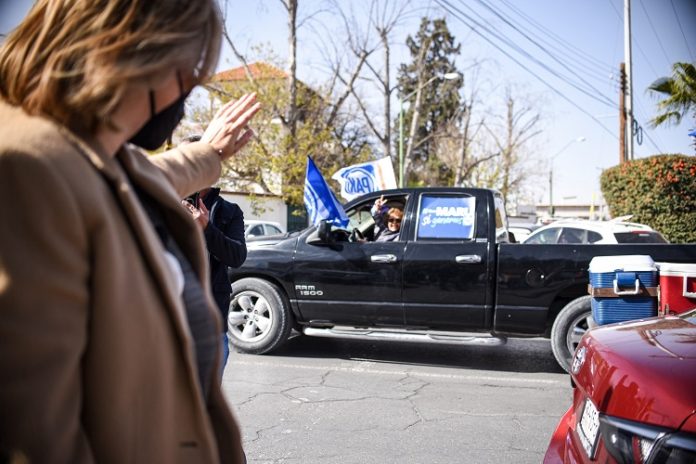 Con un apoyo en caravanas vehiculares en la ciudad, y con el apoyo virtual de loa integrantes de su partido Acción Nacional, María Eugenia Campos Galván, acudió a la sede del PAN en la avenida Zarco de la ciudad de Chihuahua, alrededor del mediodía.