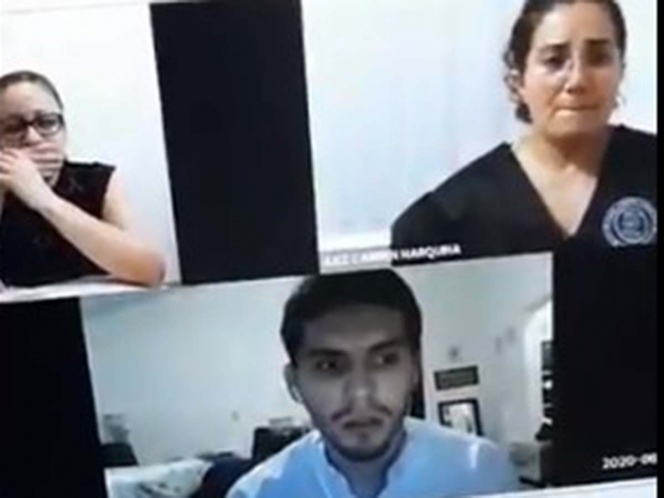 La reacción de la jueza y otra mujer que estaba en la videollamada muestran la sorpresa ante la situación.