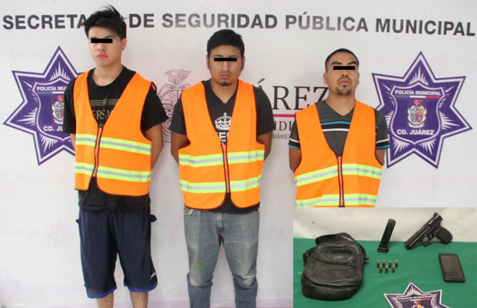 Ciudad Juárez- Policías municipales arrestaron a tres personas, en posesión de un arma de fuego.
