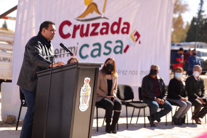Ciudad juárez, Chih.- El Presidente Municipal, Cruz Pérez Cuéllar, dio arranque al programa “Cruzada en mi casa”, con el cual se estarán pintando gratuitamente 3 mil viviendas de la colonia Felipe Ángeles y sus alrededores.
