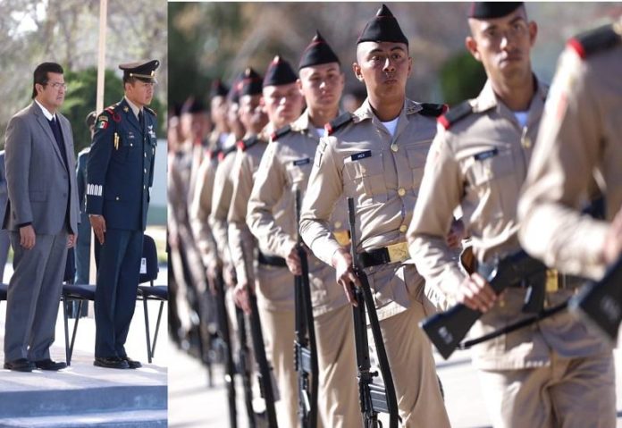 Ciudad Juárez, Chih.- El Presidente Municipal Armando Cabada Alvídrez, participó en la Ceremonia de Protesta de Bandera de los soldados del Servicio Militar Nacional del 1er Escalón de Adiestramiento 2020.El evento fue encabezado por el General de Brigada Diplomado de Estado Mayor, Ernesto Joaquín Geminiano Jiménez, Comandante de la Guarnición Militar de la Plaza y mandos castrenses.